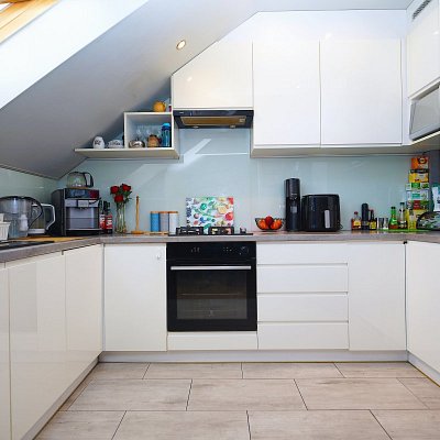Zabudowa kuchenna z piekarnikiem, lodówką , okapem, zmywarką .