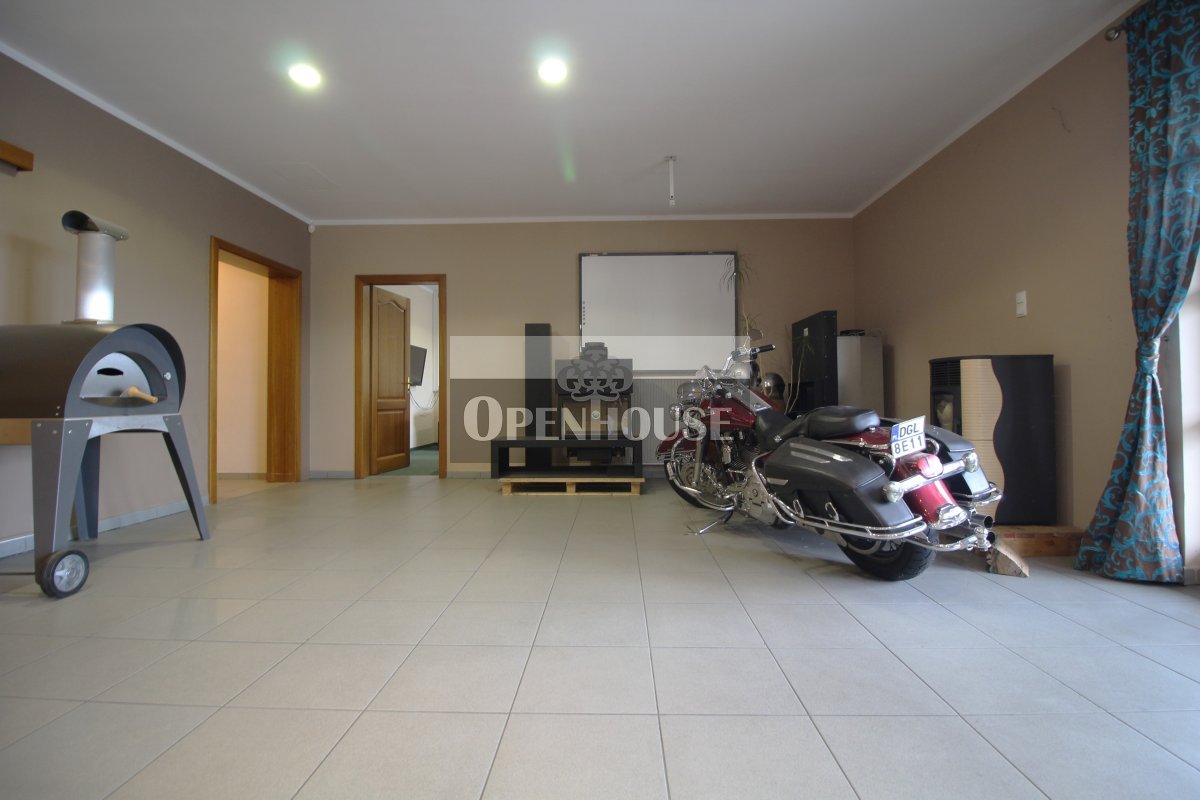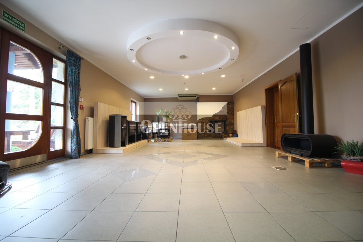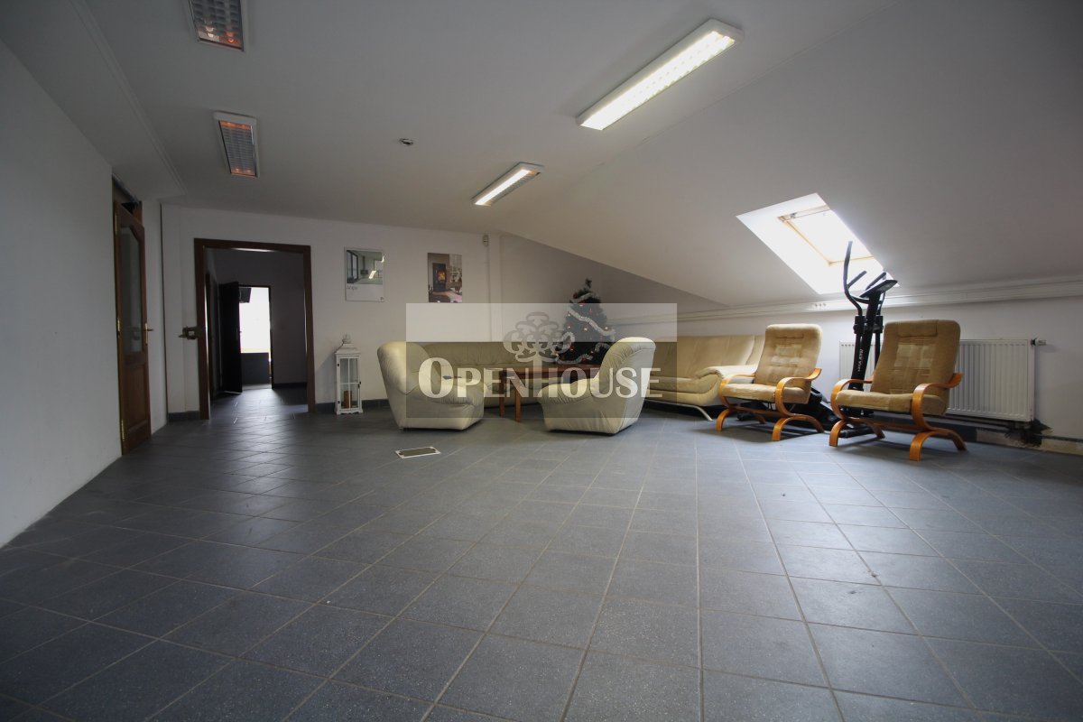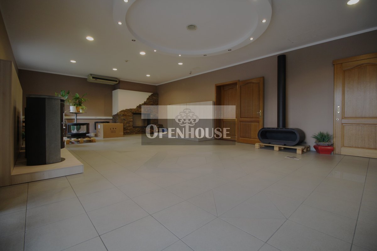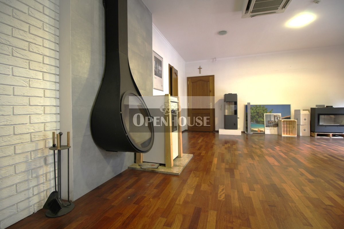 Na parterze znajduje się lokal biurowo-usługowy, trzy niezależne biura, kotłownia, warsztat, zaplecze sanitarne oraz garaż. Wnętrza wykończone są z dbałością o jakość – parapety wykonane z granitu, okna drewniane, co nadaje całości elegancki i solidny charakter.