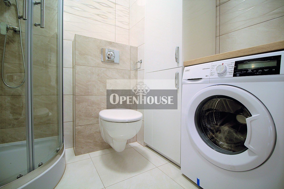 Składające się z dużego salonu z aneksem kuchennym (lodówka, piekarnik, płyta indukcyjna, zmywarka), dwóch sypialnii (szafy pod zabudowę), łazienki połączonej z WC (pralka).