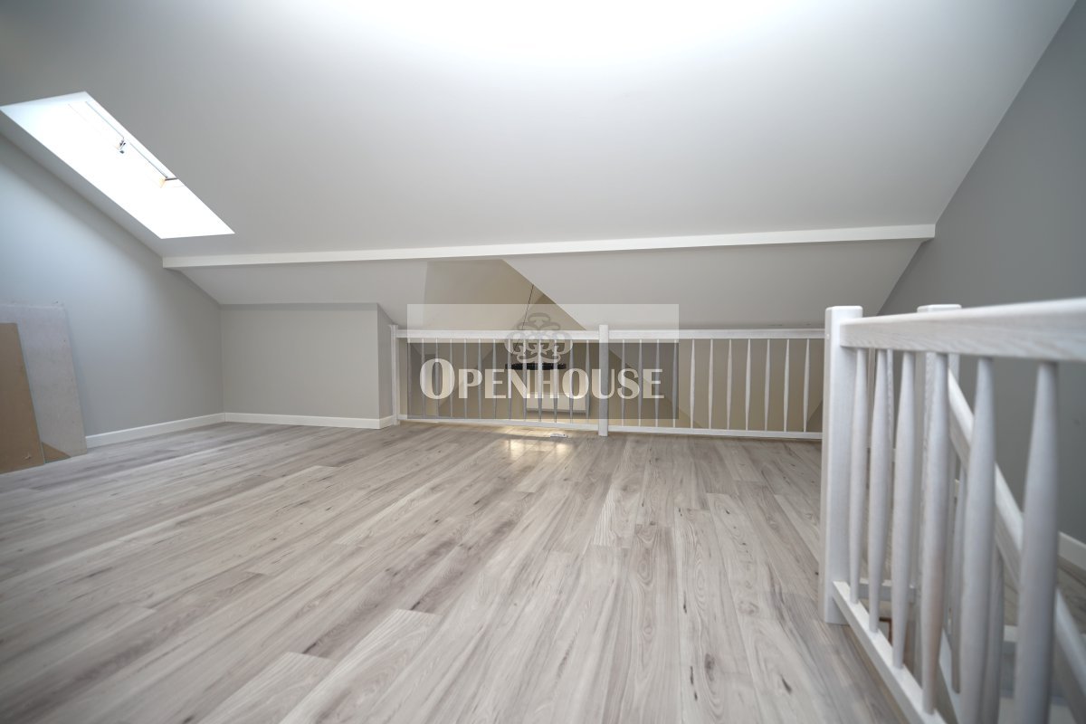 Drugi poziom stanowi antresola pełniąca funkcję dodatkowego pokoju w formie otwartej przestrzeni, idealnej na gabinet, strefę relaksu lub sypialnię.